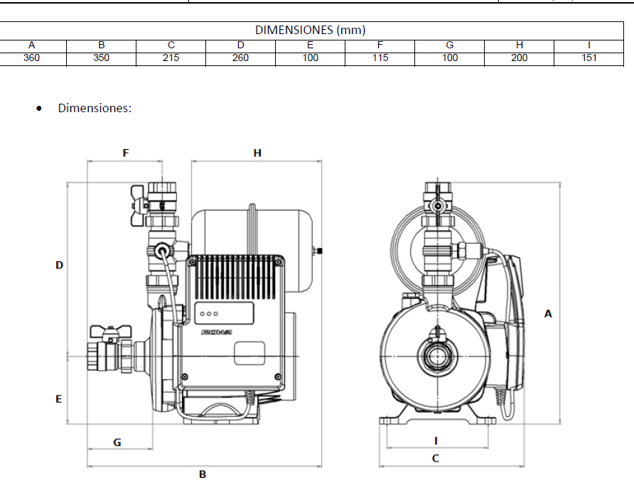 • Posee un sistema de auto protección ante un funcionamiento prolongado bajo condiciones extremas de presión y caudal.